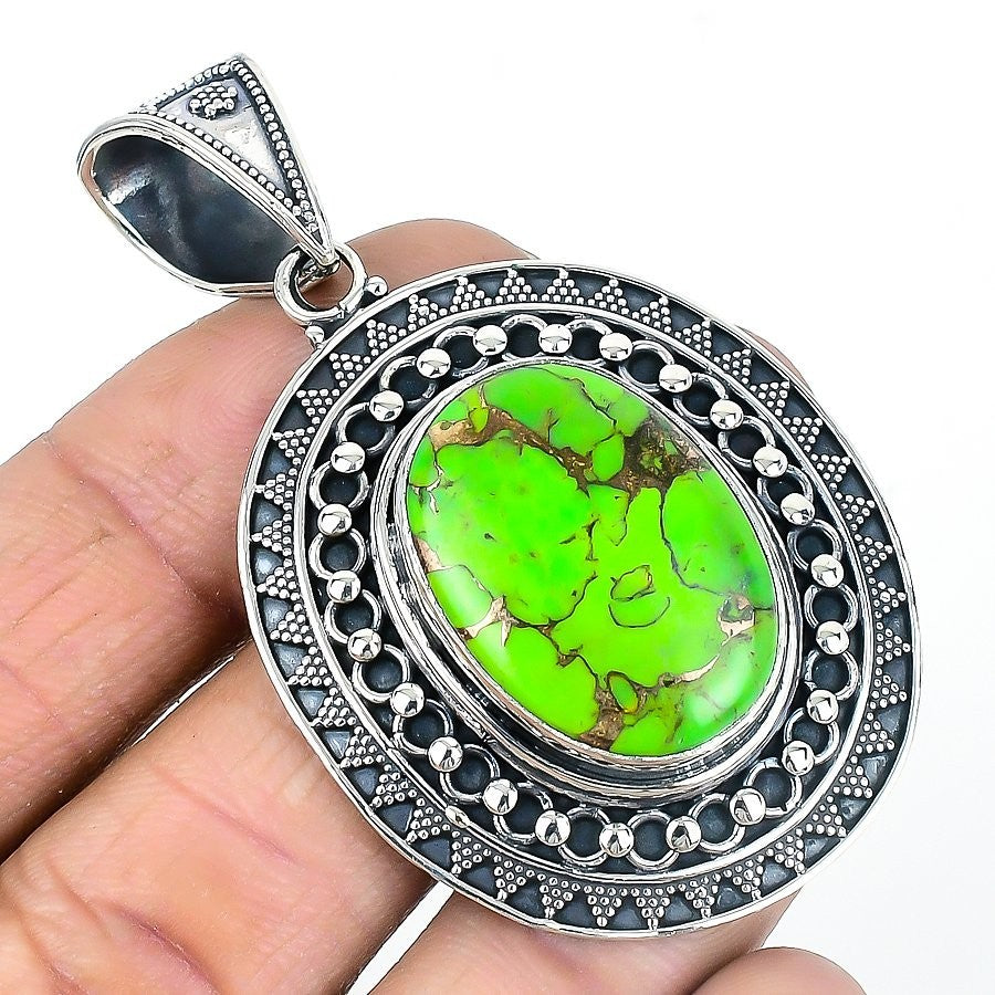 Copper Green Turquoise Stone Sterling Silver Birthday Art Deco Pendant Jewelry