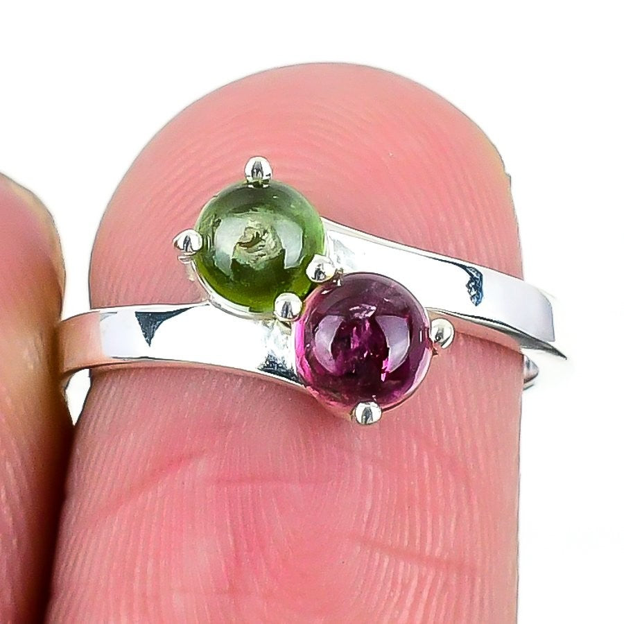 Natural Tourmaline Solid Silver Handmade Cluster Root Chakra Unique Ring Size 6