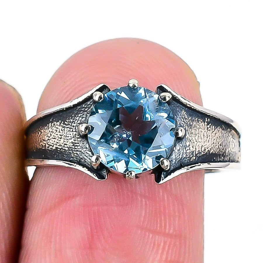 Swiss Blue Topaz Stone 925 Silver Boho Cluster Daughter Gift Ring Jewelry Size 8