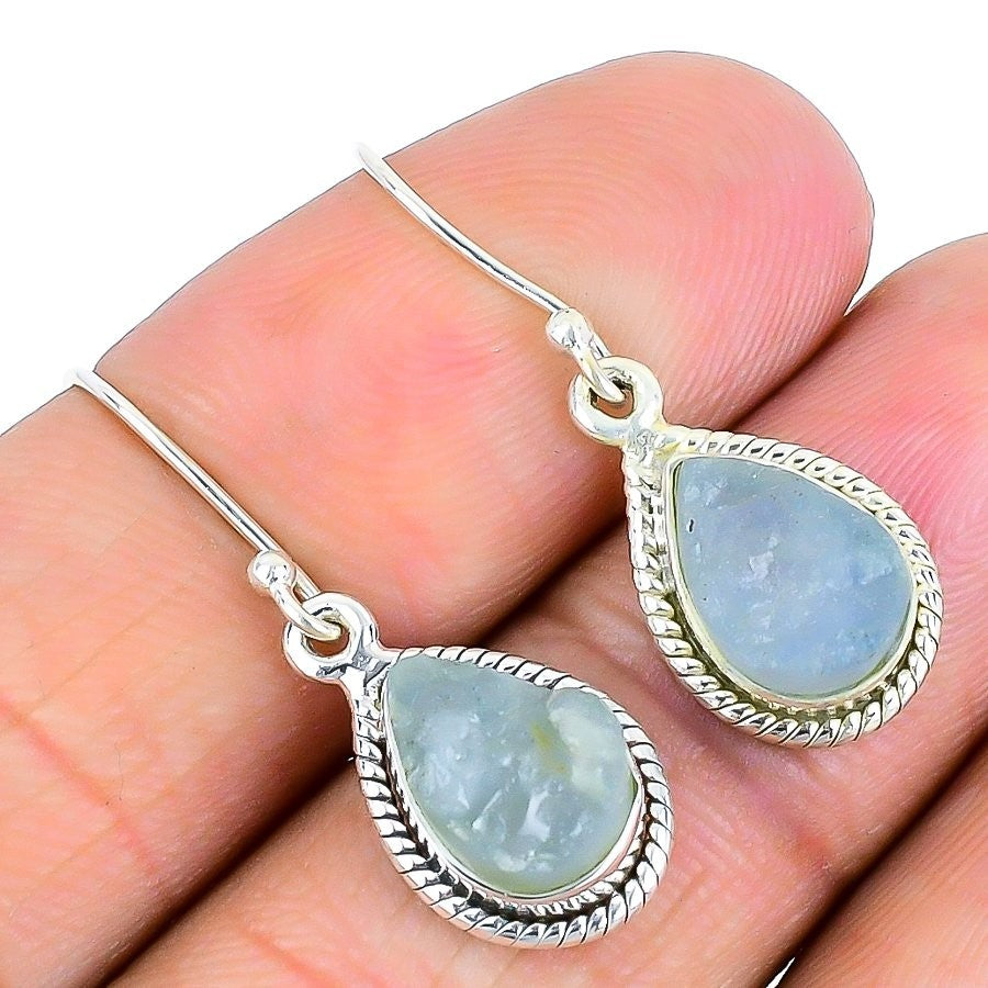 Aquamarine Drusy Gemstone Sterling Silver Stud Daughters Day Earrings Jewelry