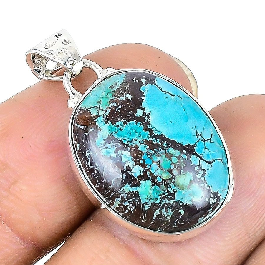 Tibetan Turquoise Stone Anniversary Engagement Wedding Pendant 925Ā SolidĀ Silver