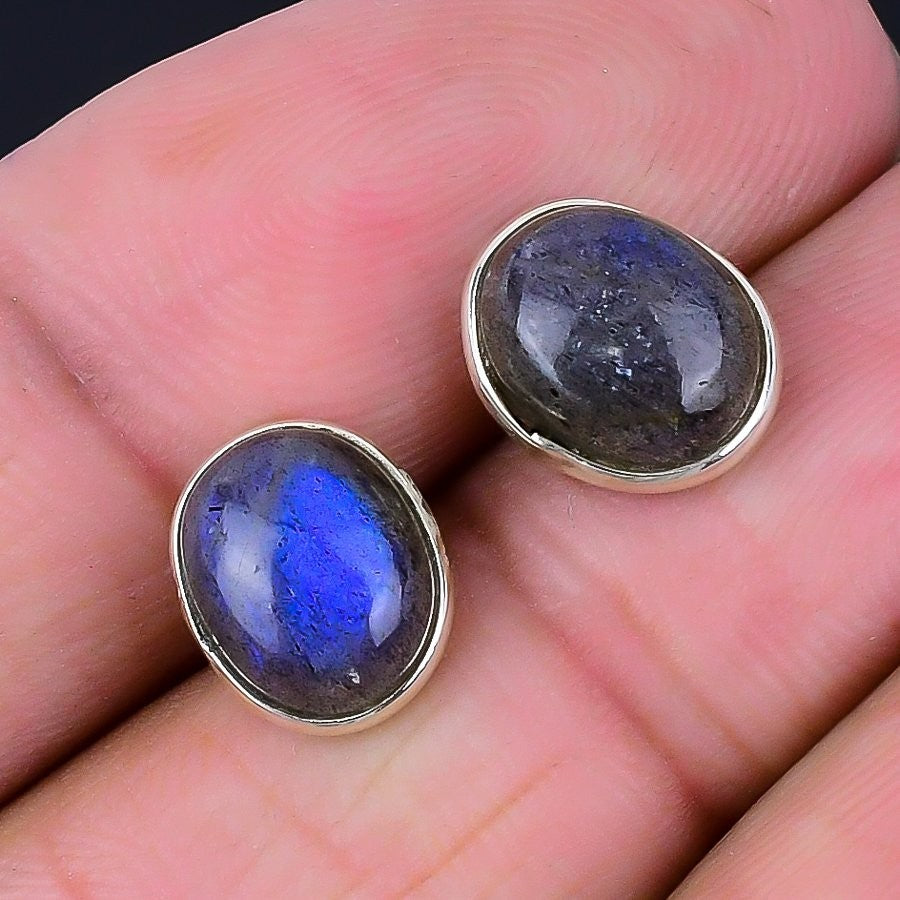 Natural Labradorite Sterling Silver Screw Back Artisan Stud Post Mother Earrings