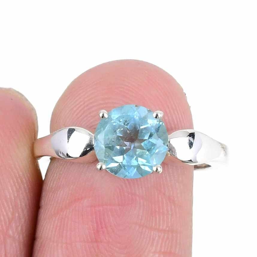 Aquamarine Gemstone 925Ā SolidĀ Silver Statement Daughter Gift Ring Jewelry US 8.5