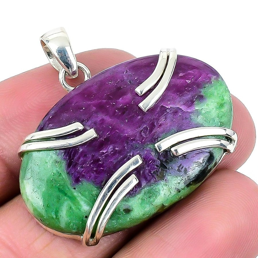 Natural Ruby Zosite Sterling Silver Daughter Gift Birthday Art Deco New Pendant
