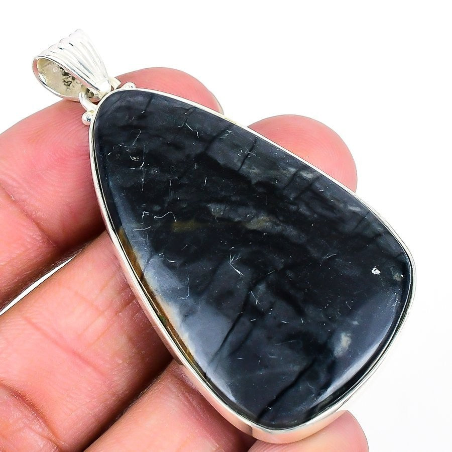 Natural Black Rutile Faceted Sterling Silver Daughters Day Sister Ethnic Pendant