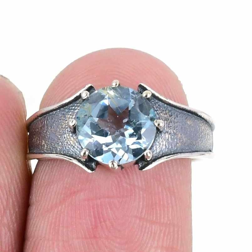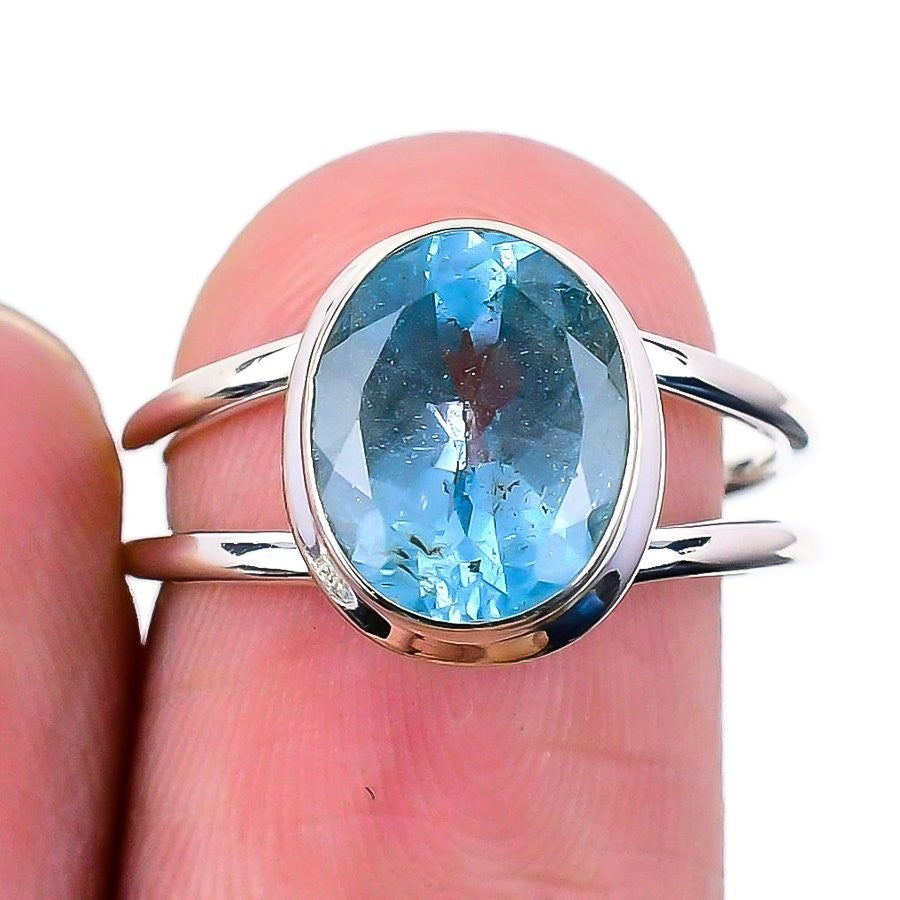 Aquamarine Stone Sterling Silver Anniversary New Statement Ring Jewelry Size 7.5