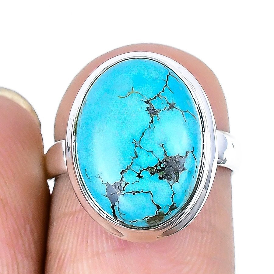 Throat Chakra Tibetan Turquoise Gemstone 925Ā SolidĀ Silver Statement Ring Size 6