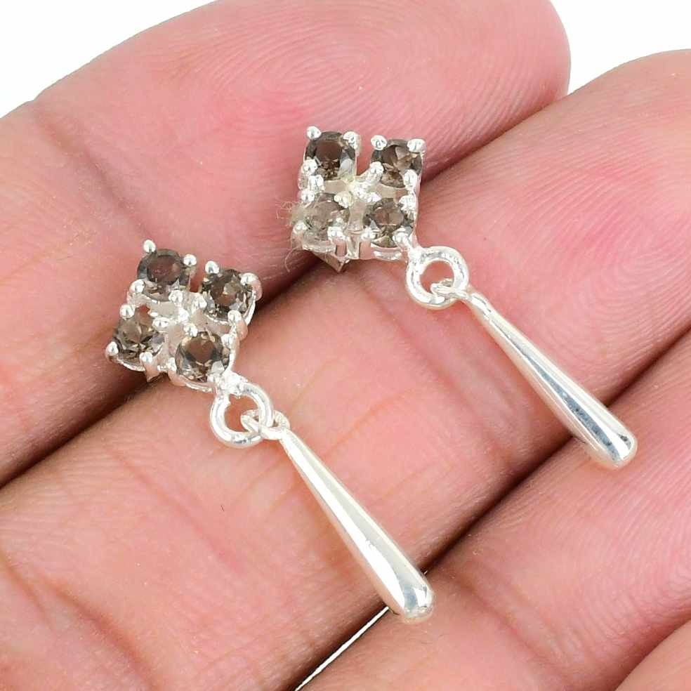 Natural Smokey Sterling Silver Hook Anniversary Dangling Handmade Wife Earrings