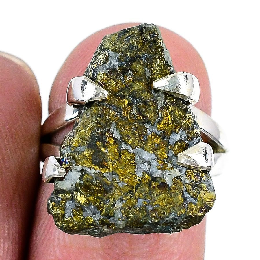 Pyrite Druzy Stone Sterling Silver Mother Statement Handcrafted Ring Size 6.5