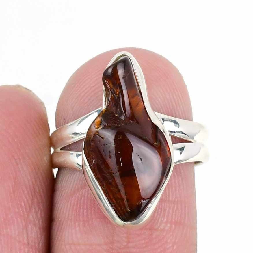 Sacral Chakra Baltic Amber Stone Solid Sterling Silver Wife Cluster Ring Size 7