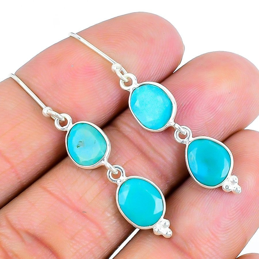 Natural Arizona Turquoise Solid Silver Sister New Stud Ethnic Earrings Jewelry