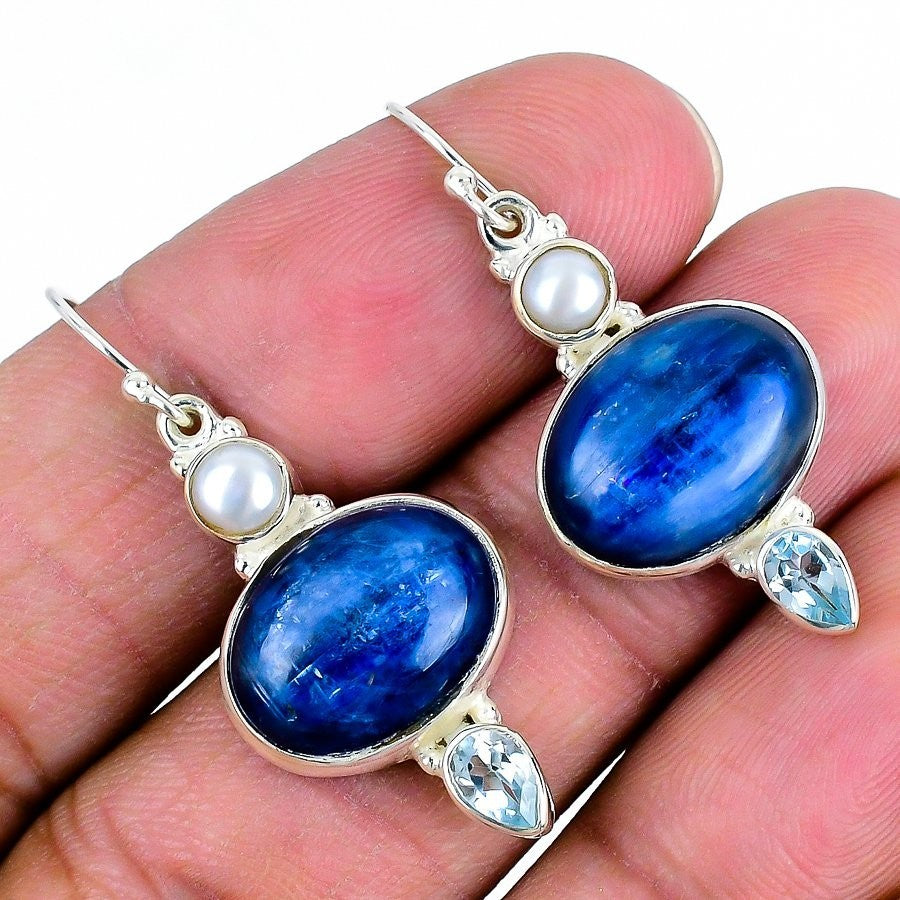 Daughters Day Deal Blue Kyanite Stone Solid Silver Dangling New Earrings Jewelry
