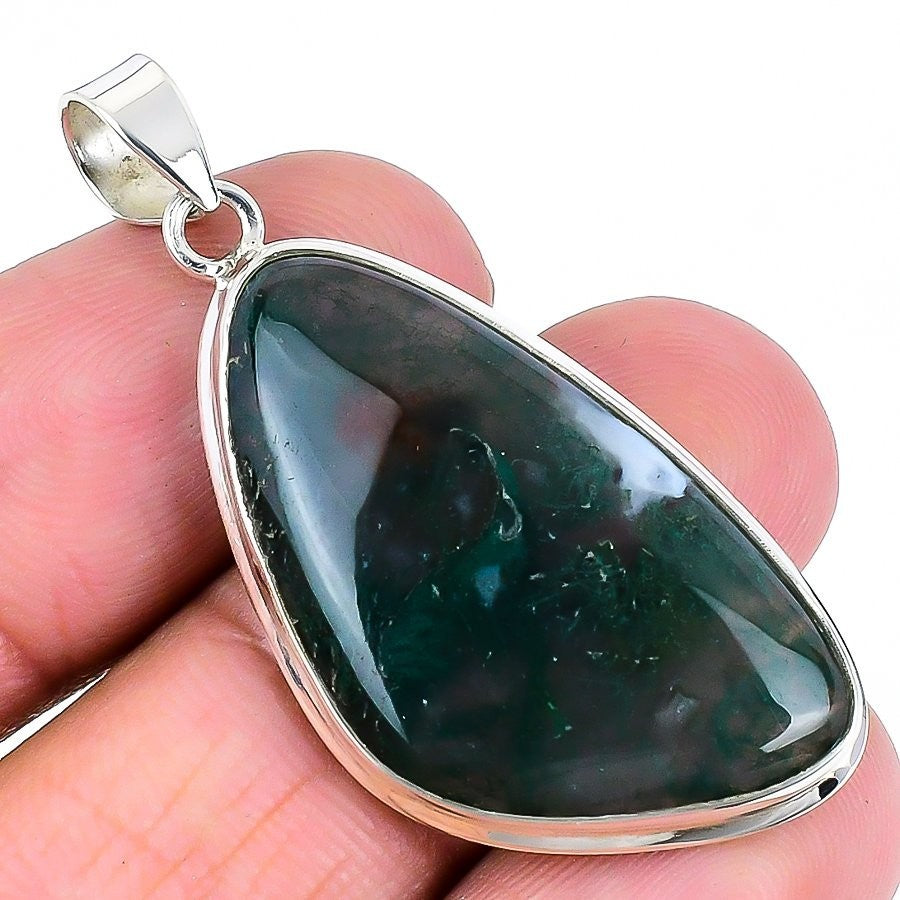 Moss Agate Stone Solid Sterling Silver Sister Birthday Daughter Gift New Pendant