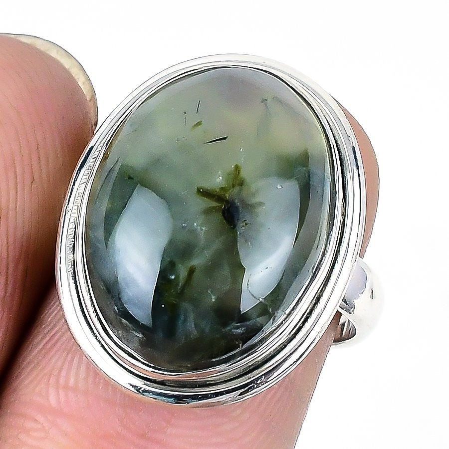 Prehnite Stone 925 Solid Silver Birthday Statement Anniversary Ring Jewelry US 7
