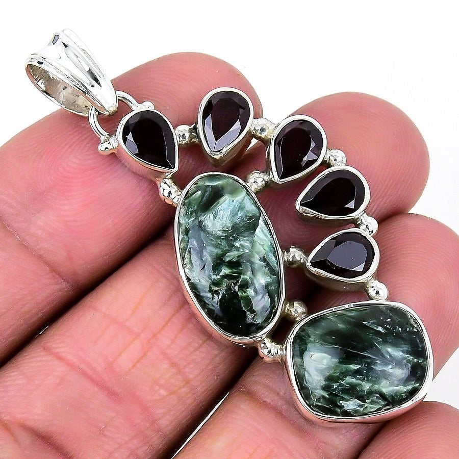 Daughters Day Sale Seraphinite Stone Solid Sterling Silver Boho Wife New Pendant