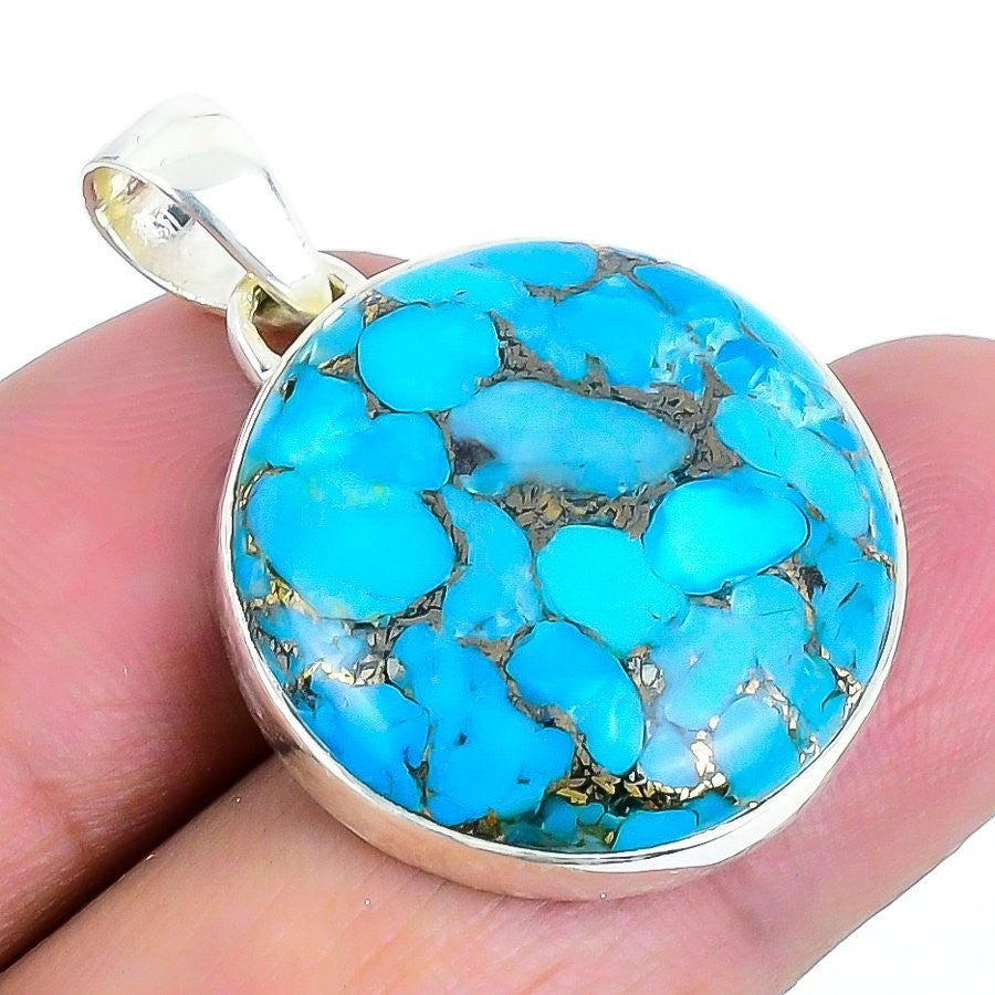 December Birth Copper Blue Turquoise Gemstone 925 Silver Trendy Pendant Jewelry
