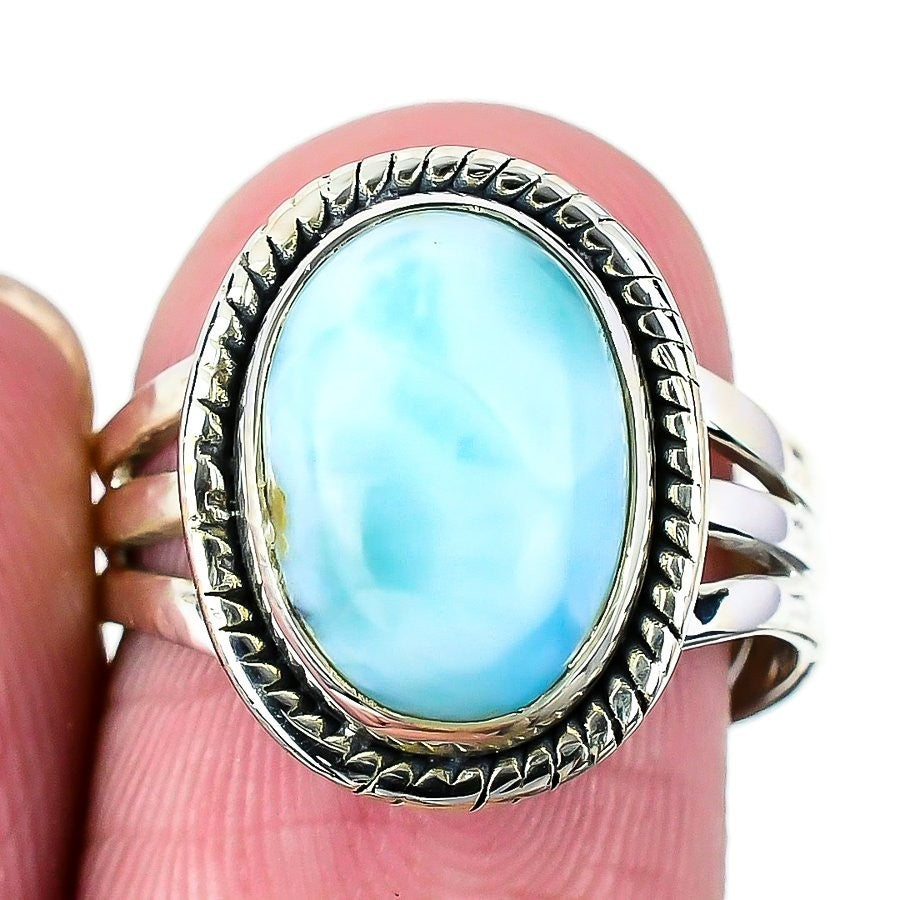 Republic Larimar Stone Boho Bezel Statement Daughter Ring 925 Sterling Silver