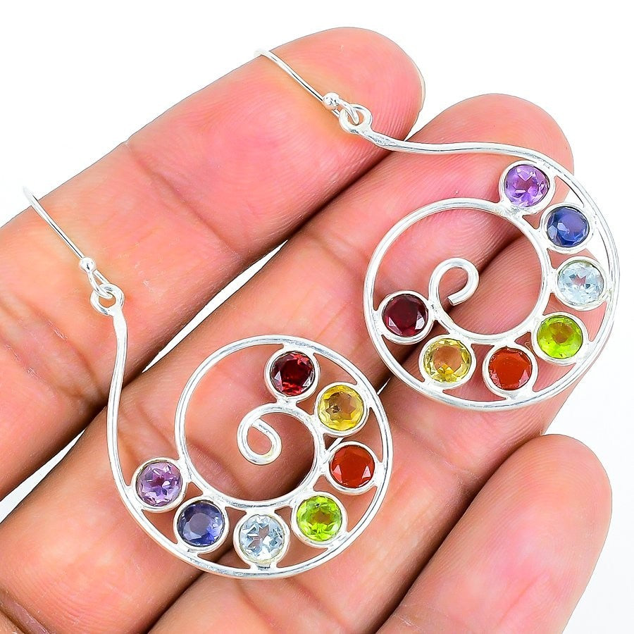 Seven Chakra Gemstone 925 Silver Hook Anniversary Drop Dangle Earrings Jewelry