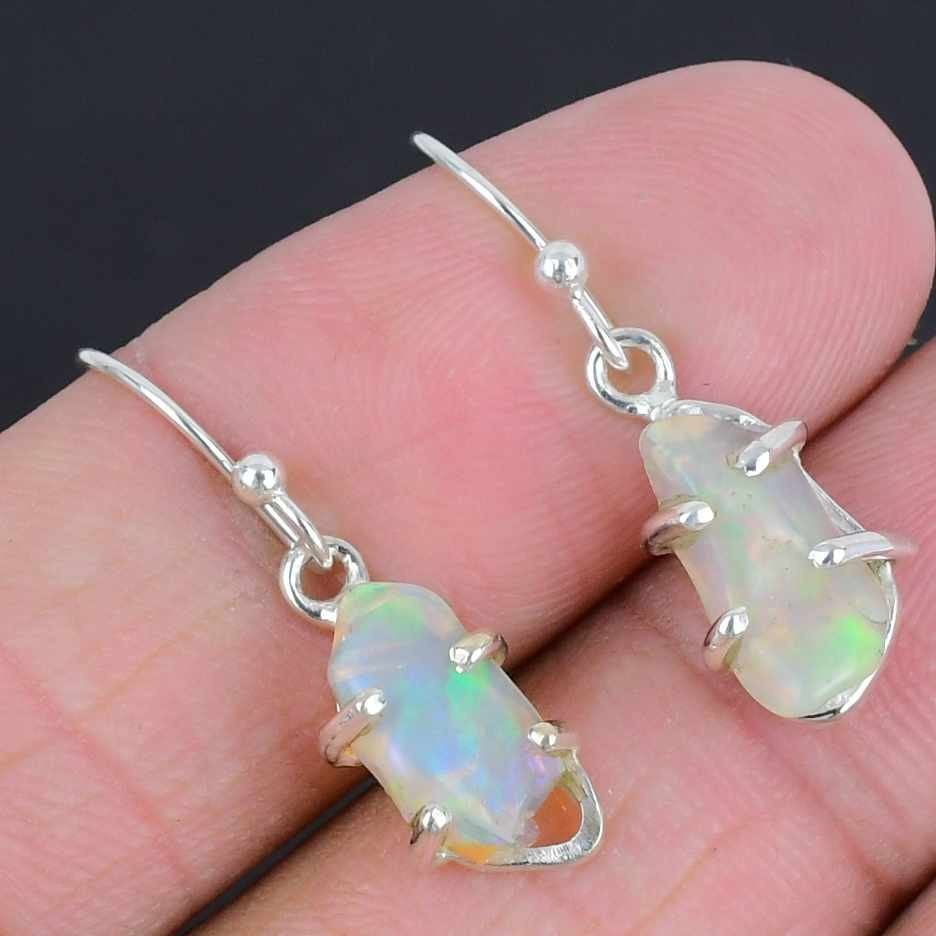 Ethiopian Op Gemstone 925 Silver Wedding Drop Dangle Birthday Earrings Jewelry