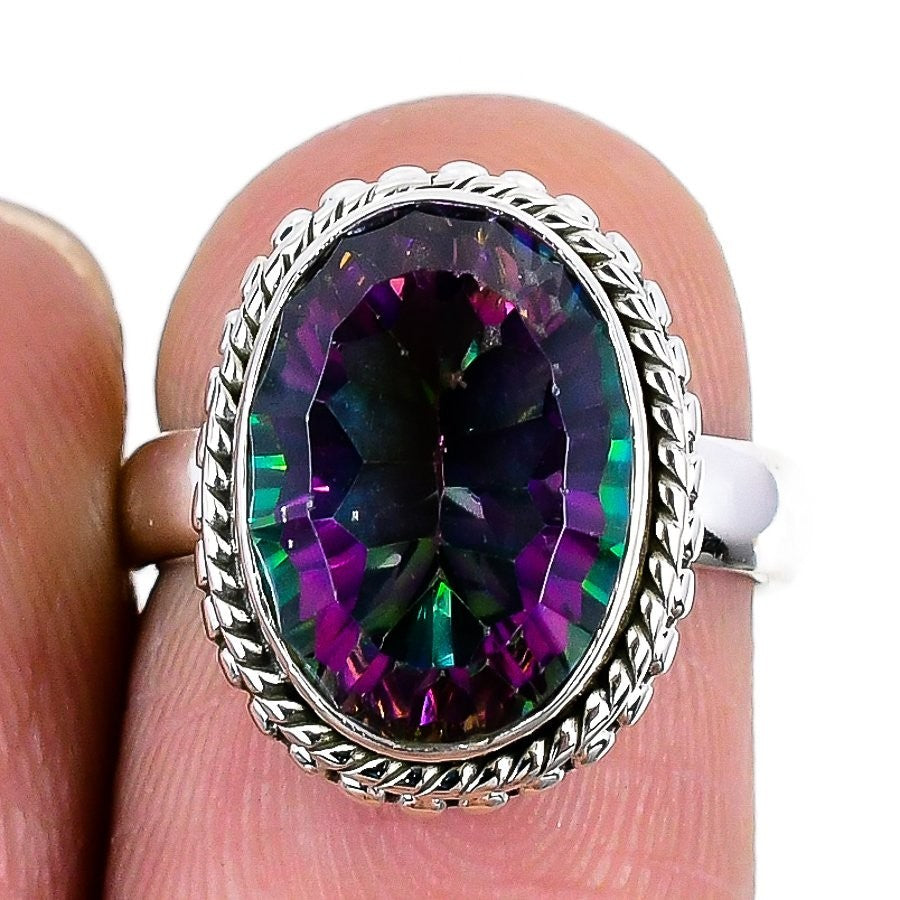 Mystic Topaz Stone Statement Artisan Daughter Gift Ring Size 8.5 Solid Silver