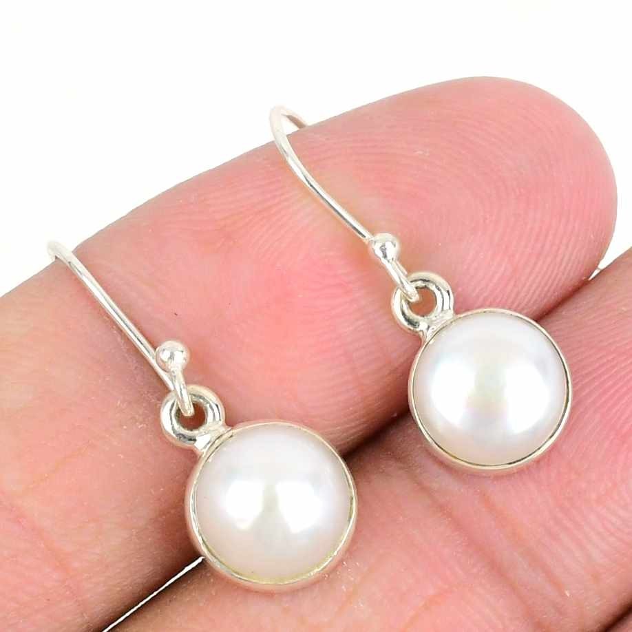Pearl Gemstone 925Ā SolidĀ Silver Daughter Hook June Birth Boho Dangle Earrings