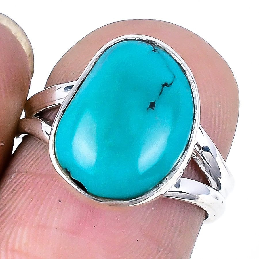 Tibetan Turquoise Gemstone Statement Ring Jewelry Solid Sterling Silver US 6.5