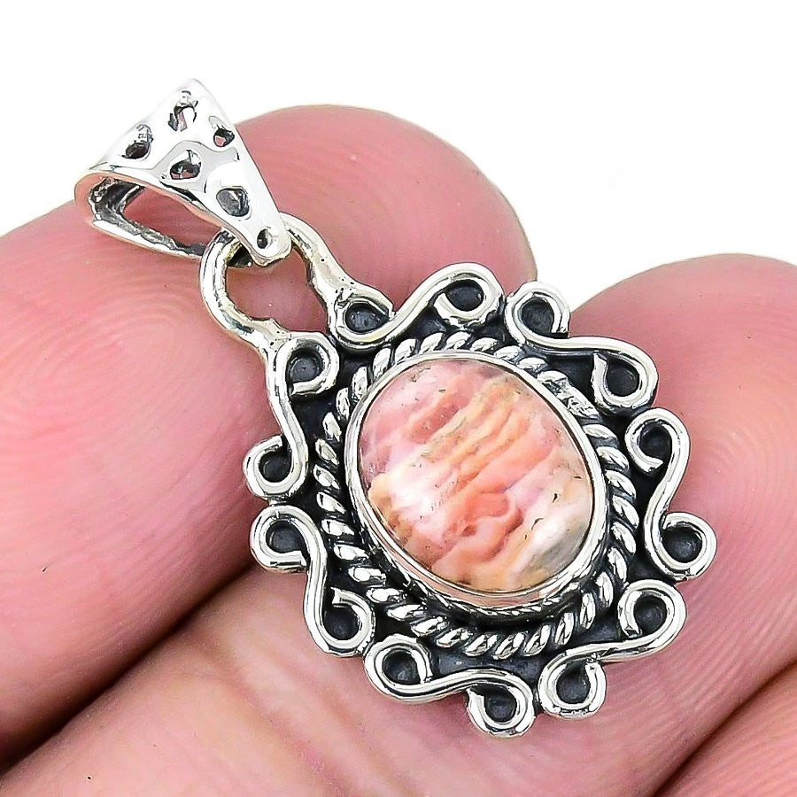 Rhodochrosite Gemstone Solid Silver Wife Channel Set Birthday Wedding Pendant