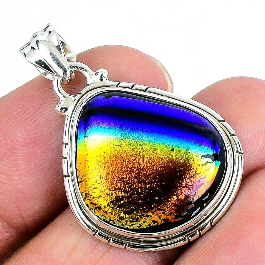 Mexican Dico Glass Stone Sterling Silver Handmade Art Deco Wife Wedding Pendant