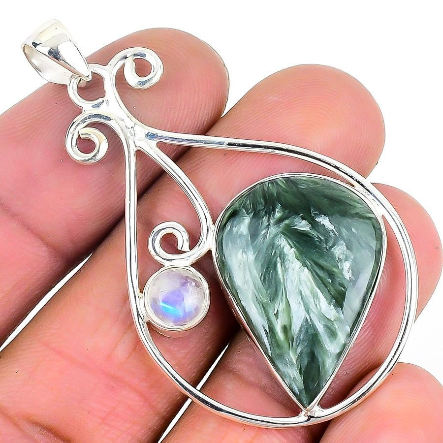 Seraphinite Stone Elegant Wife Channel Set Pendant Jewelry 925 Sterling Silver