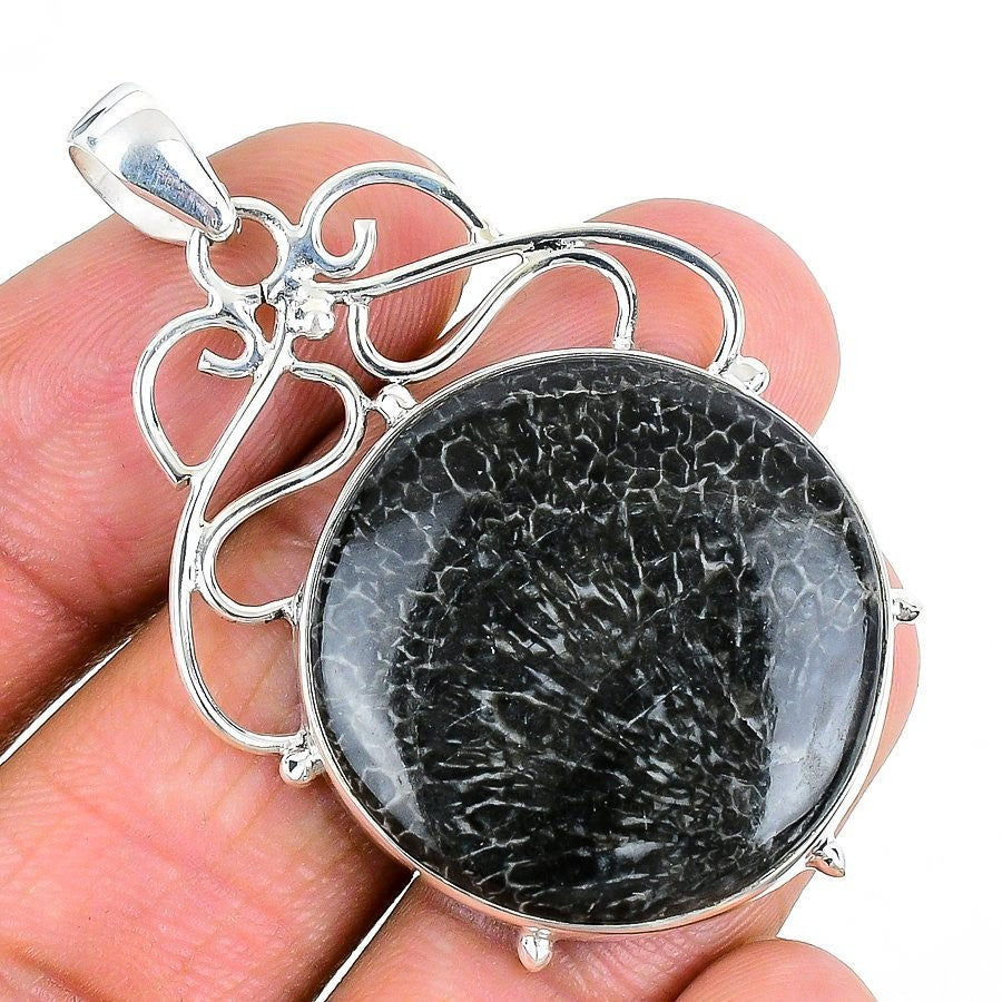 Natural Stingray Coral Sterling Silver Handcrafted Engagement Pendant Jewelry