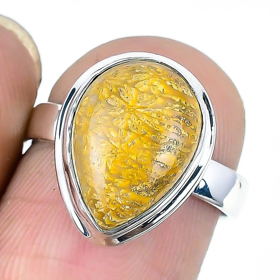 Natural Fossil Coral 925 Silver New Statement Anniversary Ring Jewelry Size 7