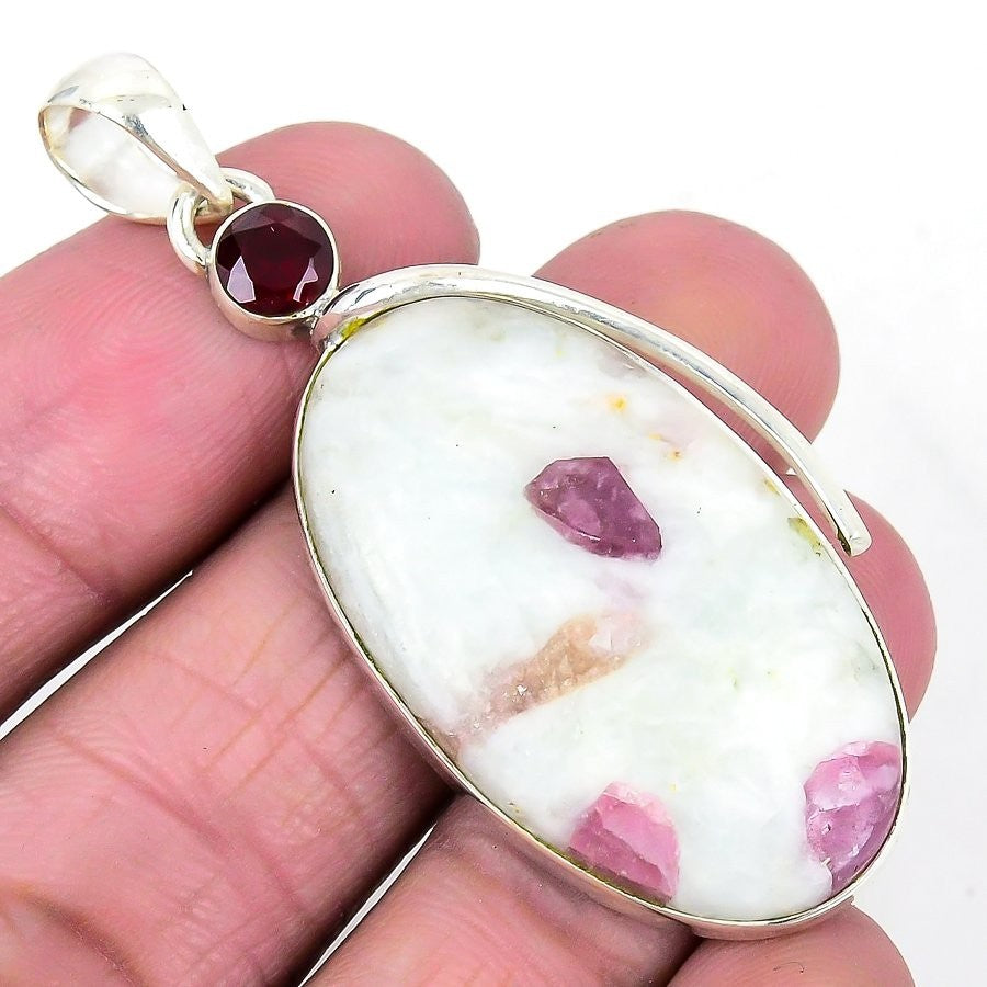 Pink Tourmaline quartz Stone 925Ā SolidĀ Silver Engagement Daughters Day Pendant