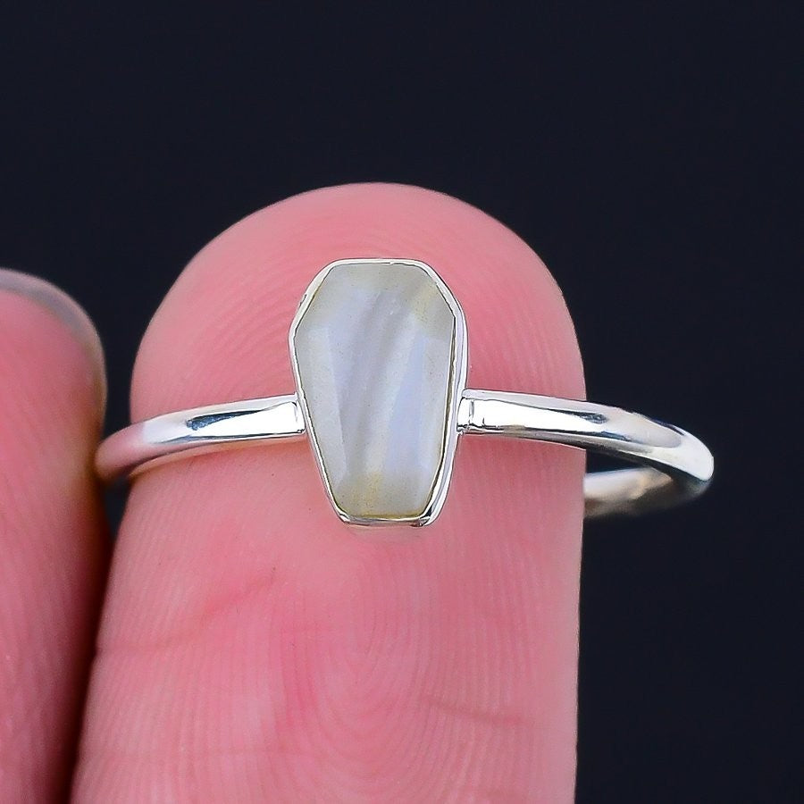 Natural Blue Lace Agate 925Ā SolidĀ Silver Cluster Channel Set Mother Ring Jewelry