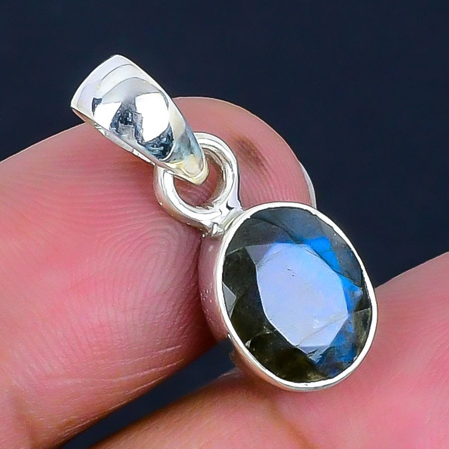 Third Eye Chakra Labradorite Faceted Stone Wife New Pendant 925 Sterling Silver