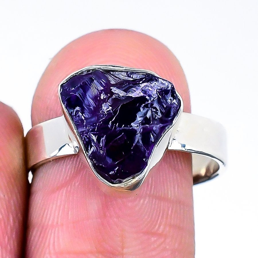 Natural Sage Amethyst New Statement Trendy Ring Jewelry 925Ā SolidĀ Silver US 14.5