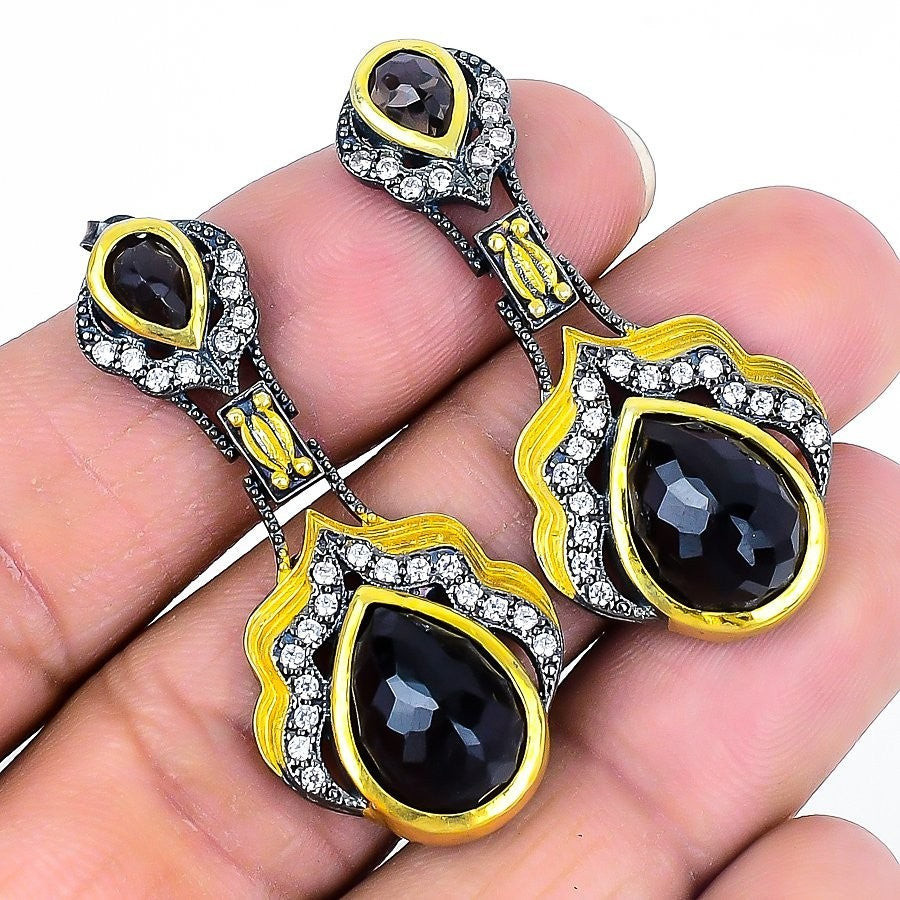Smoky Topaz Stone 925Ā SolidĀ Silver Drop Engagement Wife Daughters Day Earrings