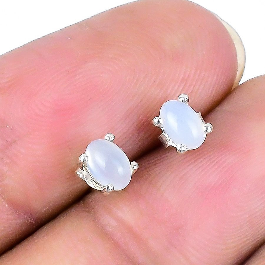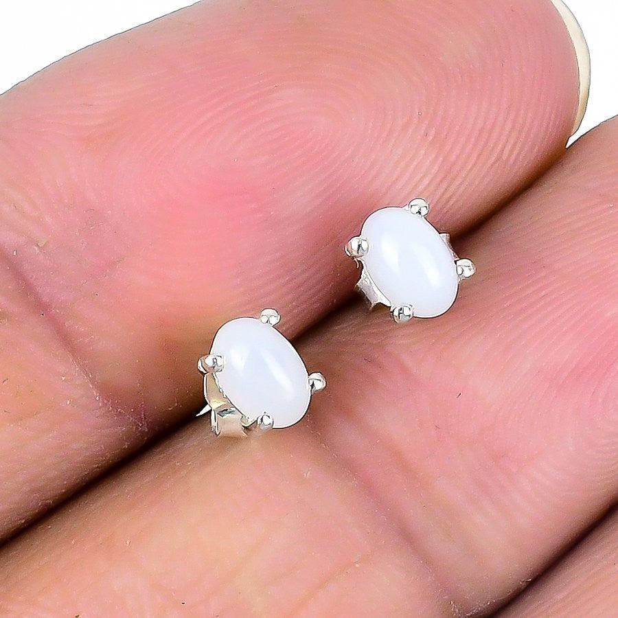 June Moonstone Stone Sterling Silver Boho Wedding Stud Birthday Earrings Jewelry