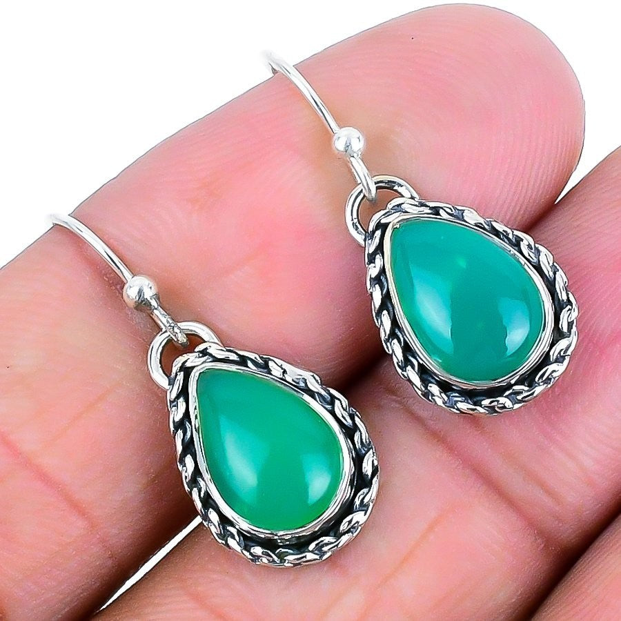 Green Onyx Gemstone Sterling Silver Mother New Drop Dangle Hook Earrings Jewelry