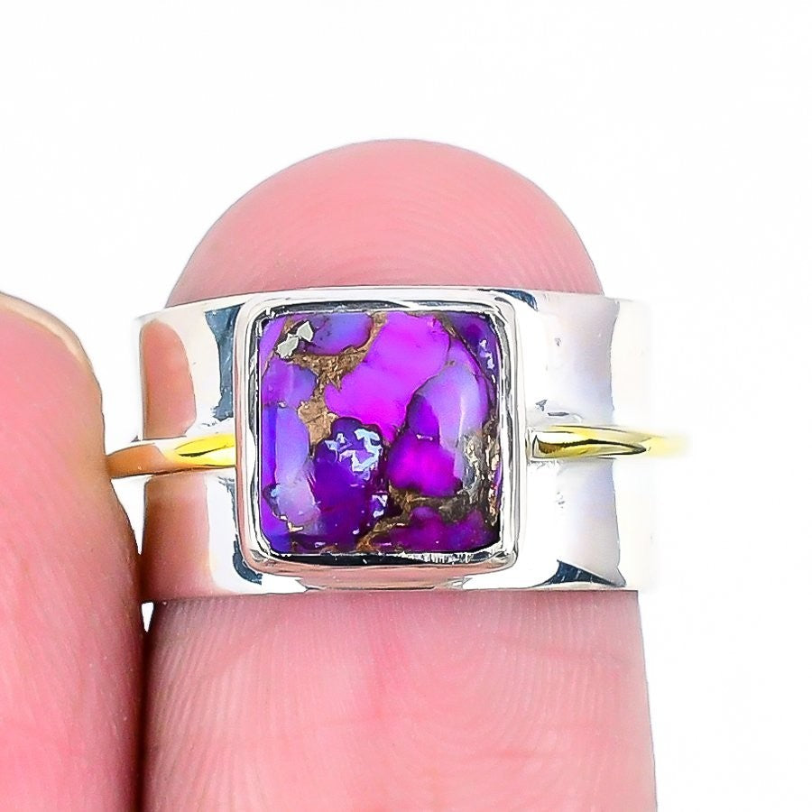 Copper Purple Turquoise Gemstone Solid Sterling Silver Boho Cluster Ring Size 6