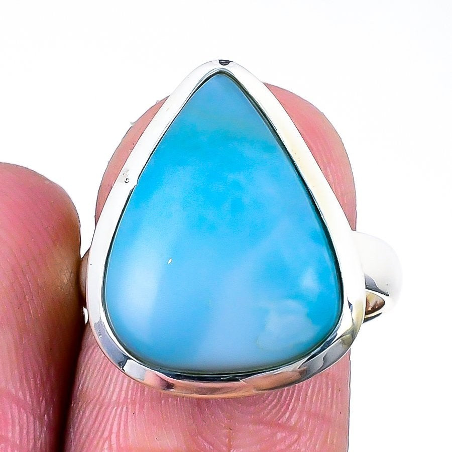 Republic Larimar Gemstone Wedding Boho Band Ring Jewelry Size 8 Sterling Silver