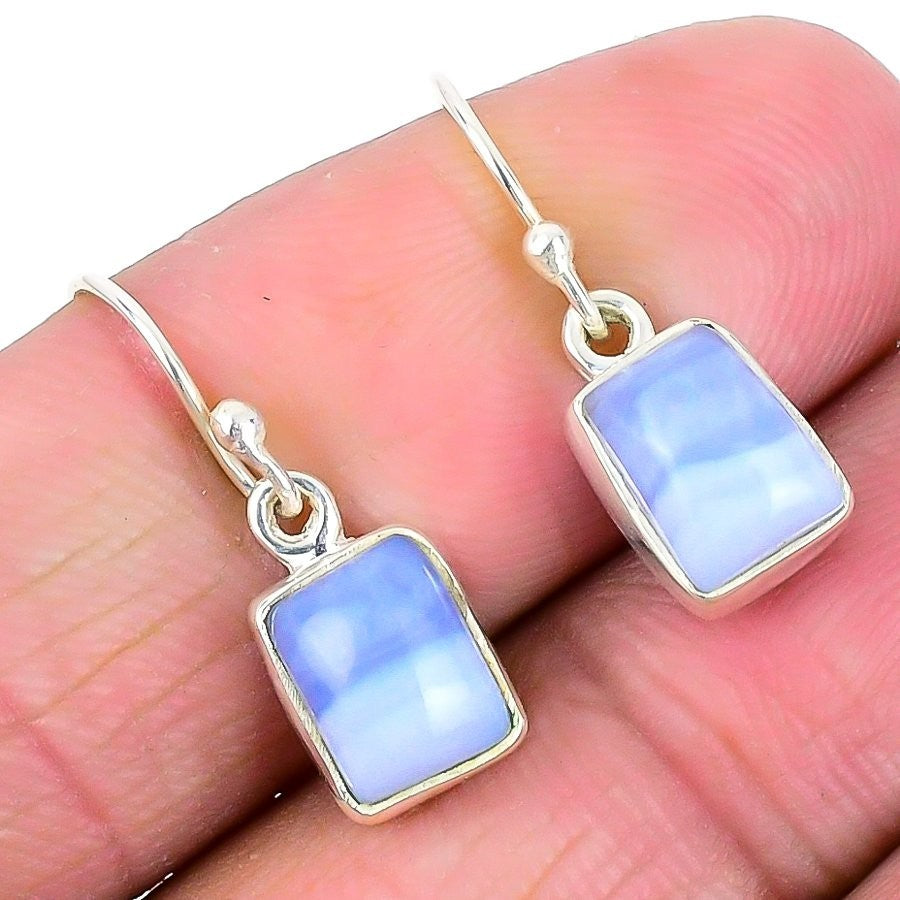 Blue Lace Agate Stone 925Ā SolidĀ Silver Sister Elegant Handmade Drop New Earrings