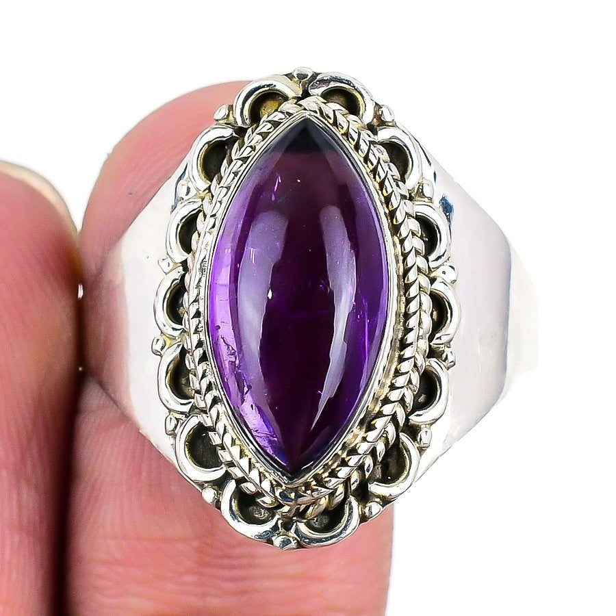 Natural Amethyst Artisan Wife Band Statement Daughter Gift Ring 925Ā SolidĀ Silver