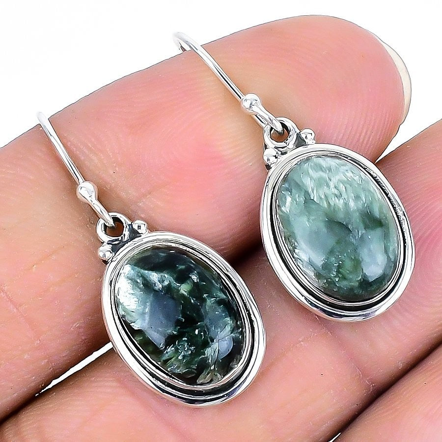 Natural Seraphinite Solid Sterling Silver Hook Sister Dangling Elegant Earrings