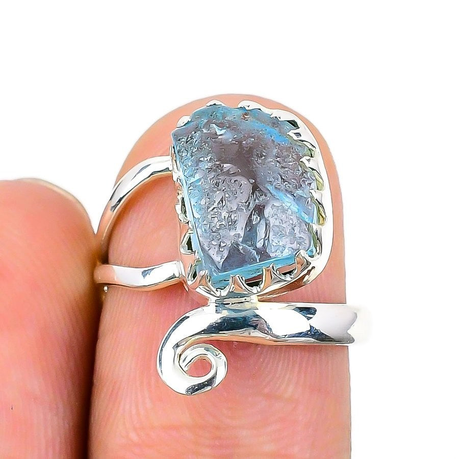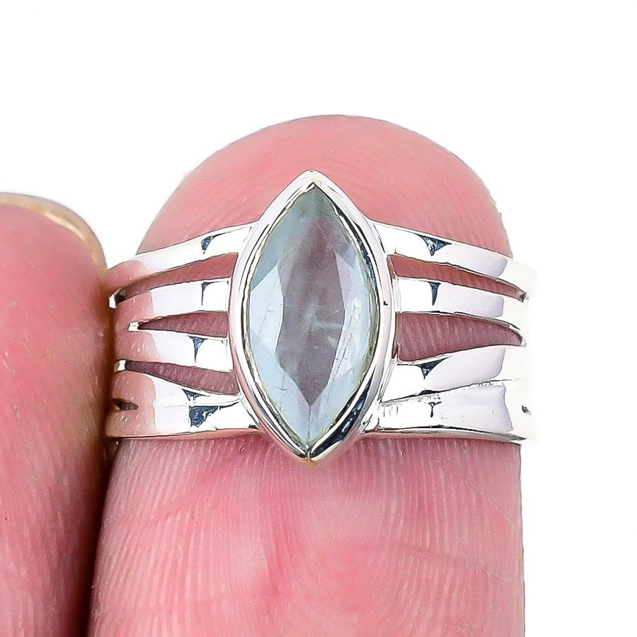 Aquamarine Gemstone Sterling Silver Statement Daughter Gift Ring Jewelry US 7.5