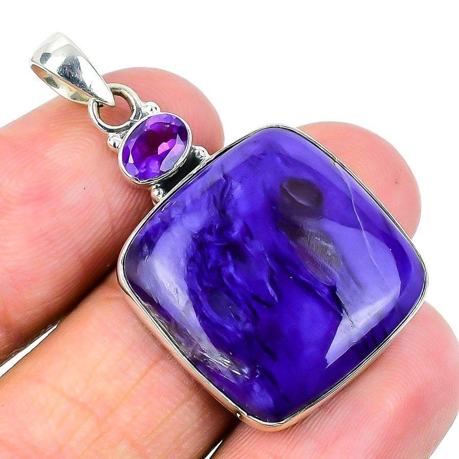 Daughters Day Deal Natural Russian Charoite 925 Silver Mother Pendant Jewelry