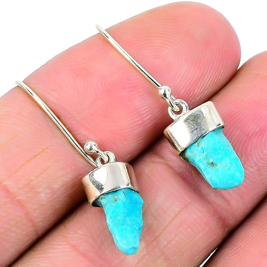 Sleeping Turquoise Stone Dangle Drop Artisan Earrings Jewelry Sterling Silver