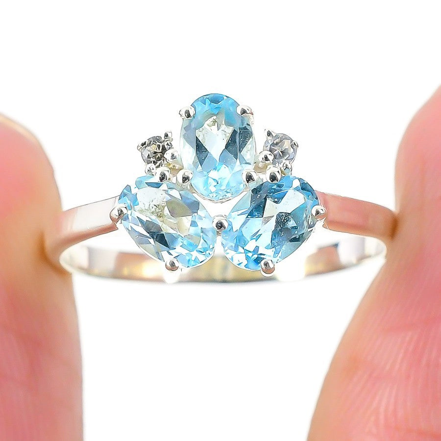 Swiss Blue Topaz Stone Solid Silver Daughter Birthday Statement Trendy Ring US 9