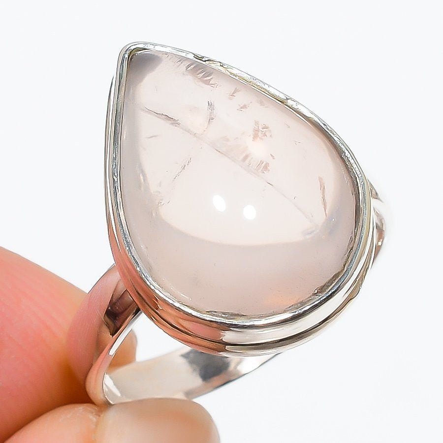 Rose Quartz Gemstone 925 Silver Statement Anniversary Wife Ring Jewelry Size 6