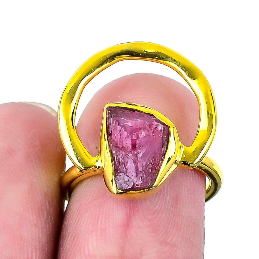 Watermelon Tourmaline Gemstone Cluster Ring Jewelry Size 8.5 925Ā SolidĀ Silver