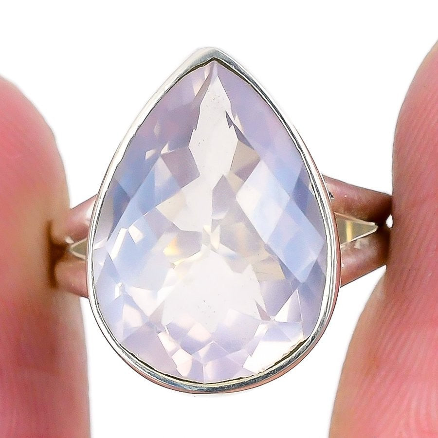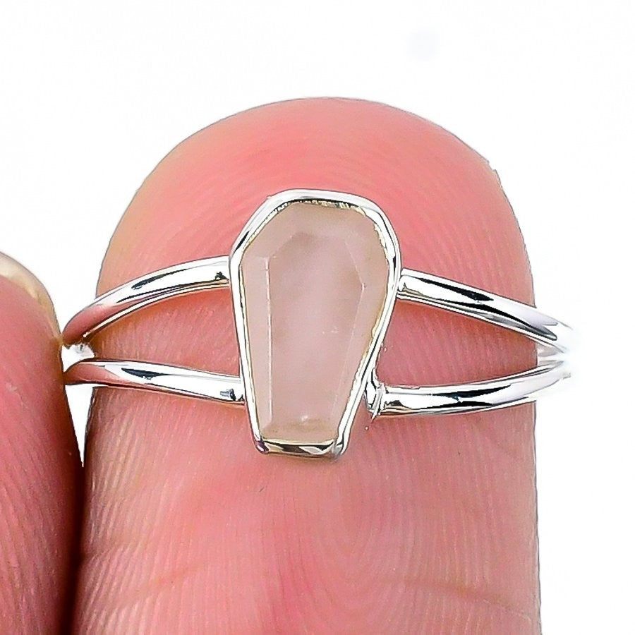 Rose Quartz Stone 925Ā SolidĀ Silver New Statement Daughter Gift Ring Jewelry US 7